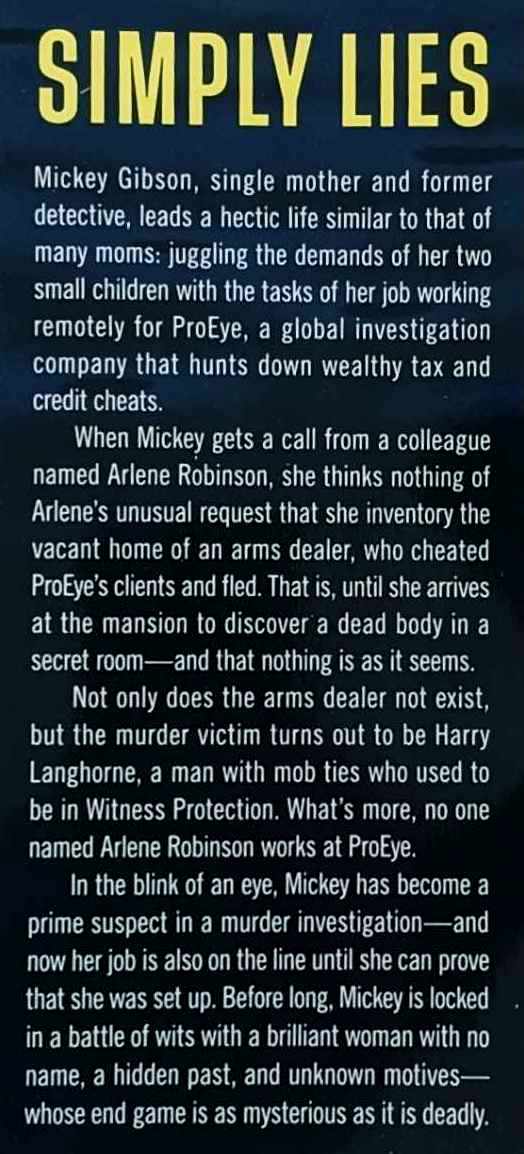 The first book in an exciting new thriller series from internationally bestselling author David Baldacci, Simply Lies introduces the dynamic and highly intelligent former detective turned private investigator Mickey Gibson, a single mother who won't back down in a story that exudes all the action, suspense and espionage Baldacci is renowned for.