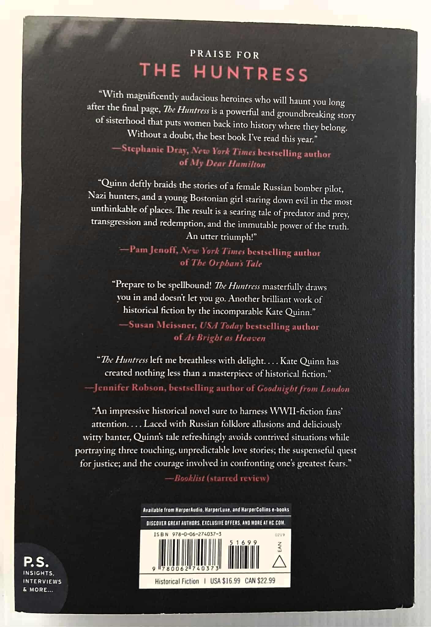 An immersive and heart-wrenching story, The Huntress illuminates the consequences of war on individual lives, and the price we pay to seek justice and truth.