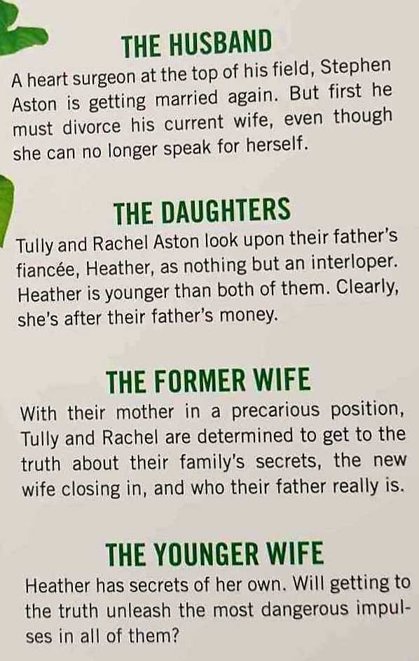 A twisty novel of domestic suspense, The Younger Wife attempts to unravel the incredibly tangled vines the hold one family secrets . . .