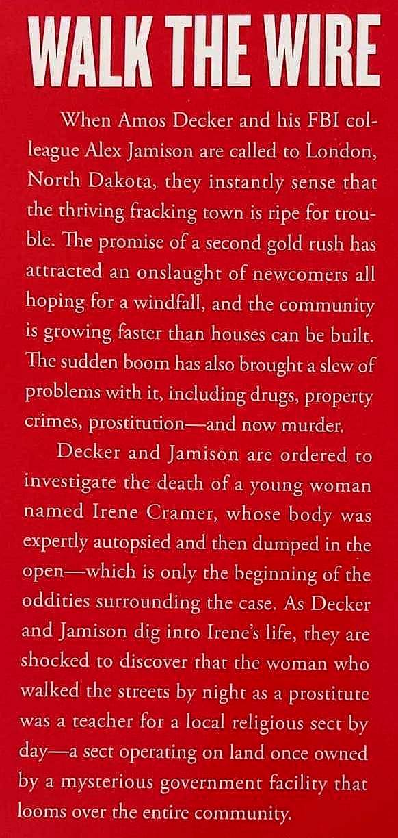 Another arresting installment in David Baldacci's bestselling 'Memory Man' series, Amos Decker (the FBI consultant with an absolutely perfect memory) returns in Walk the Wire to solve a gruesome murder in a booming North Dakota oil town and it looks like Decker will need all of his extraordinary memory and detective skills, along with the assistance of a surprising ally, to root out a killer before the boom town explodes . . .