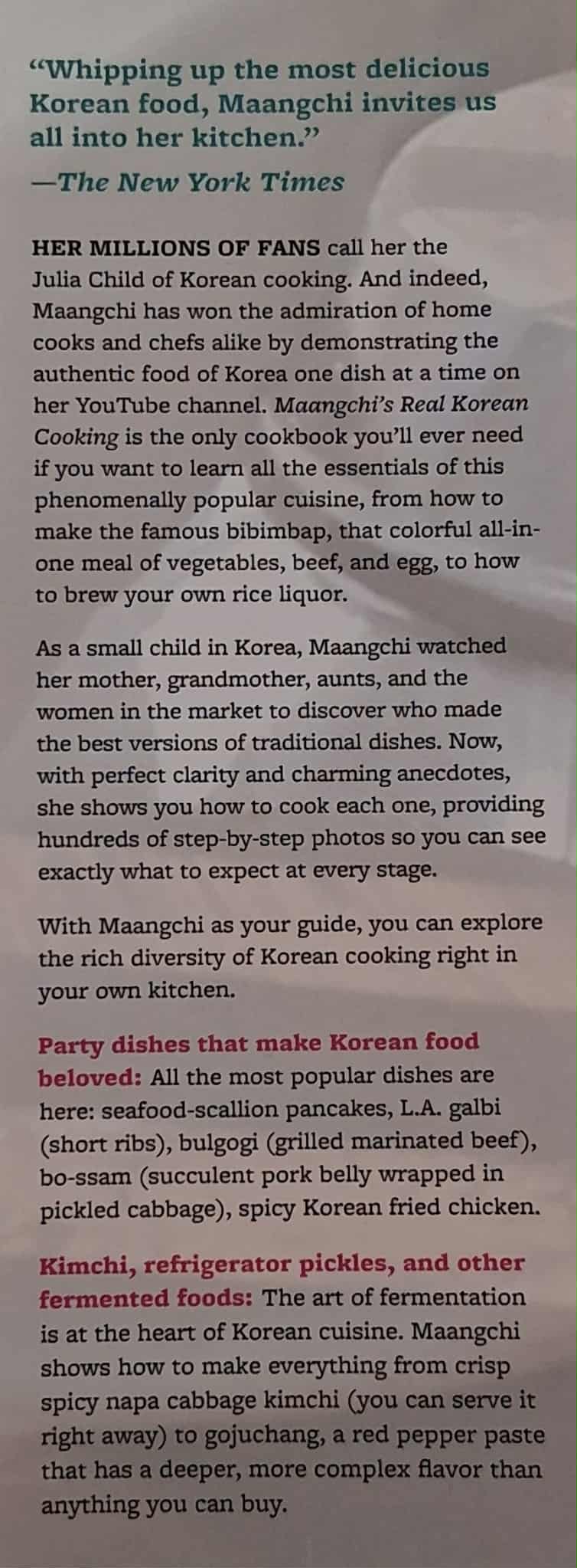 A must-have for every kitchen, Maangchi’s Real Korean Cooking is a complete course on Korean cuisine for the home cook, brought to you by internet sensation Maangchi, a YouTube star and the world's foremost authority on Korean cooking who has won the admiration of home cooks and chefs alike with her trademark combination of good technique and good cheer.