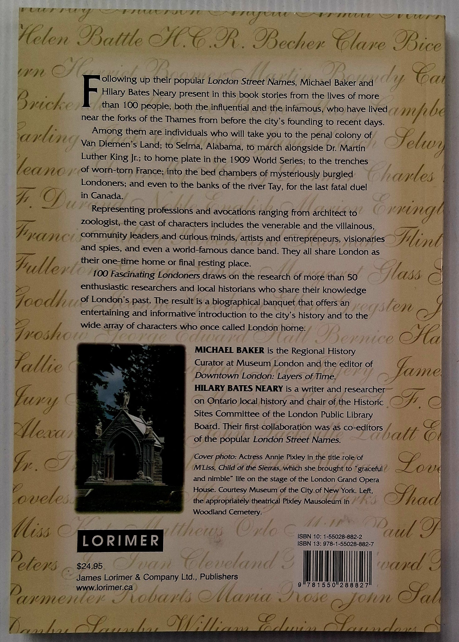 100 Fascinating Londoners features stories drawn from the lives of more than one hundred people, both the influential and the infamous, who made London, Ontario their home reflecting a century and a half of London's history.