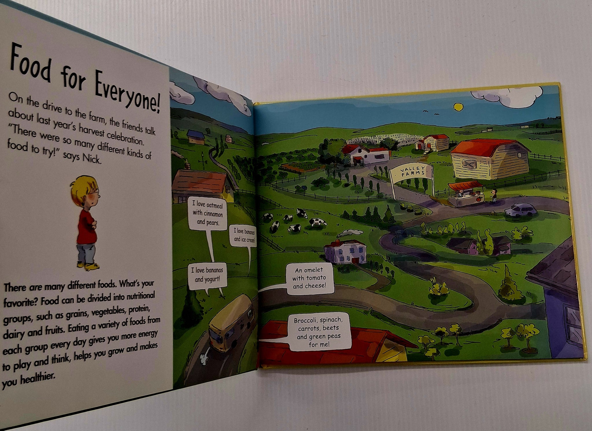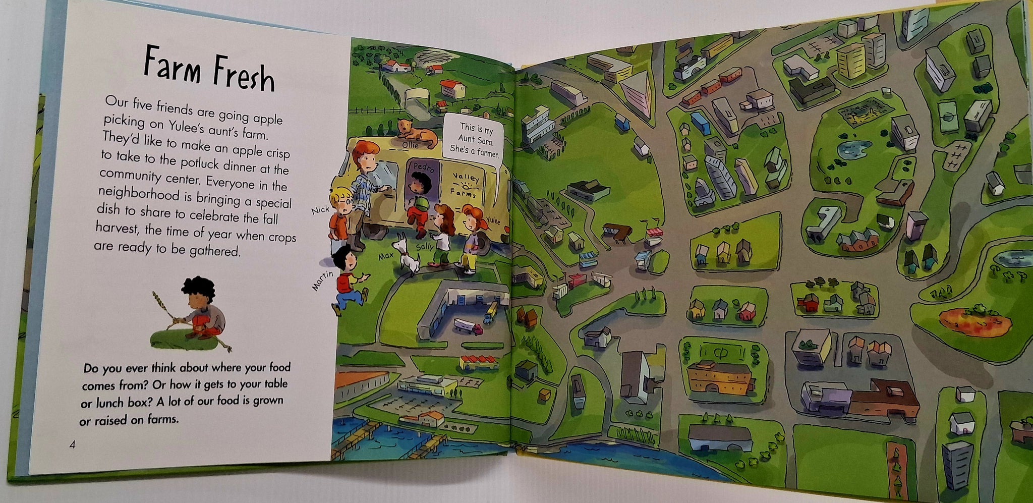 Join Yulee and her friends as they take a trip to Aunt Sara's farm to pick apples and make a dessert for a potluck harvest dinner. When the children go on a tour of the farm they learn all sorts of interesting things about the food we eat and where it comes from . . .