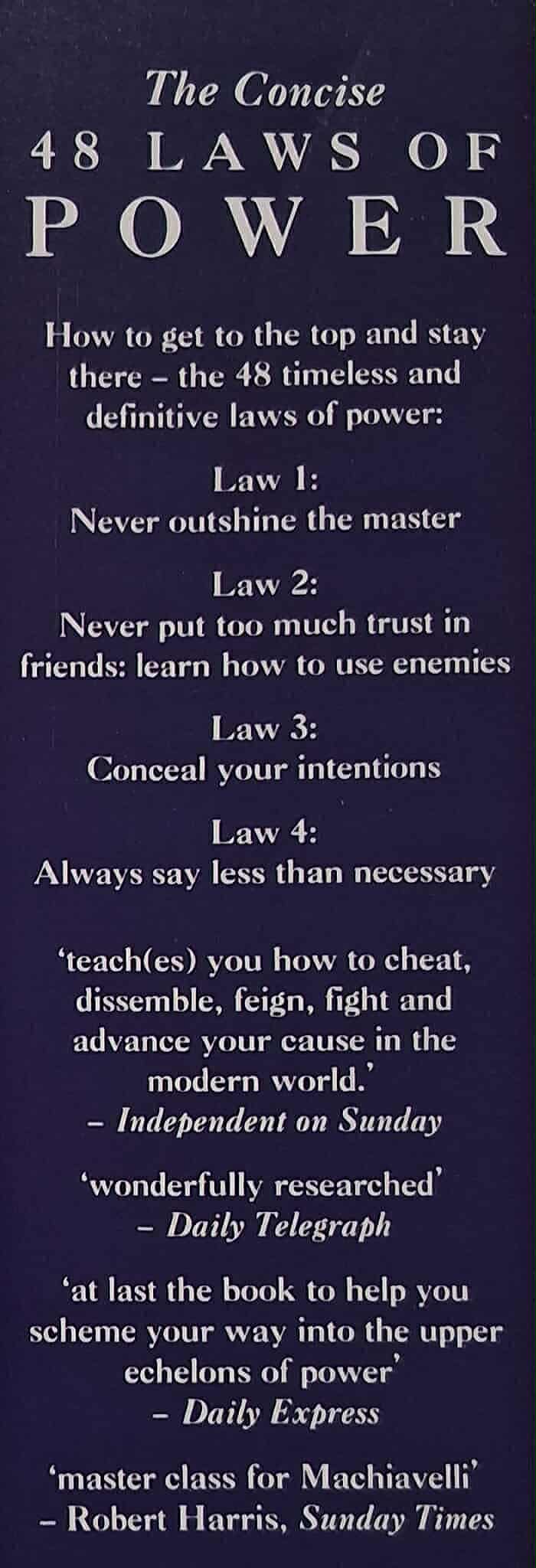 Distilling three thousand years of the history of power into forty-eight essential laws, The Concise 48 Laws of Power is a multi-million-copy bestseller and is commonly regarded as the definitive manual for anyone interested in gaining, observing, defending against ultimate control, or simply to understand the rules of the game.