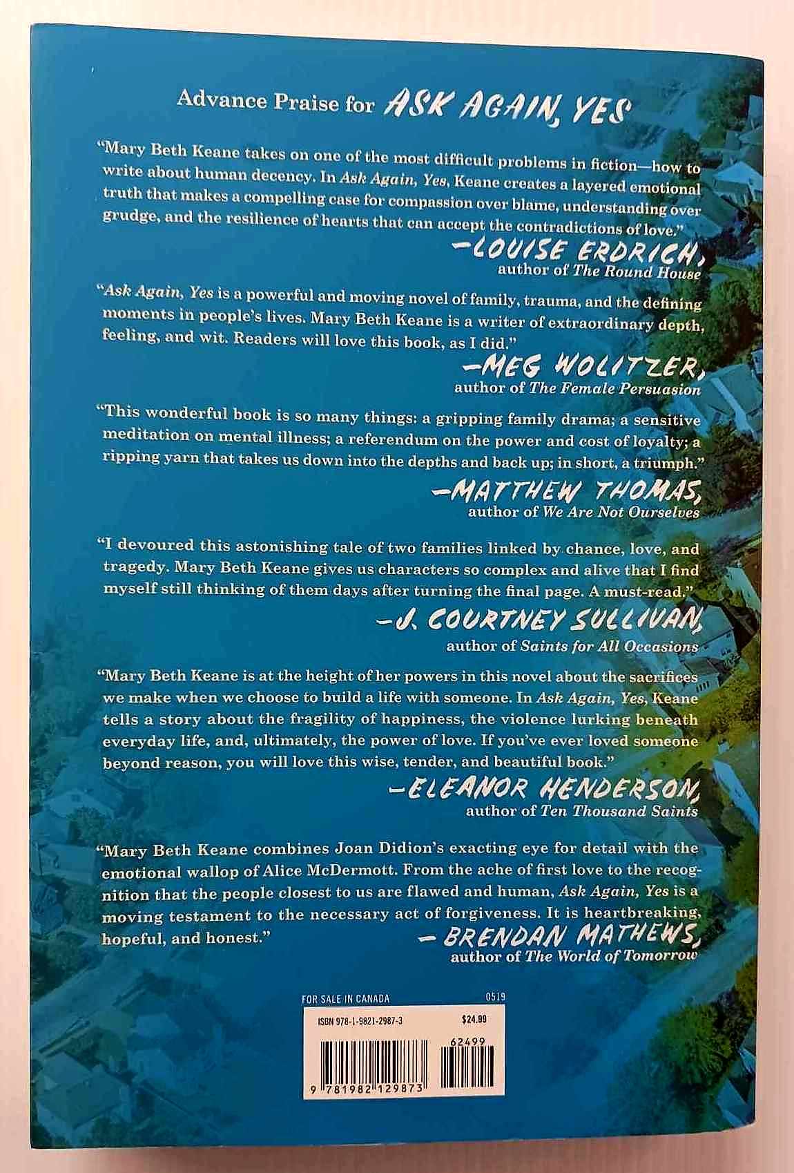 Ask Again, Yes is a deeply affecting exploration of the lifelong friendship and love story that while tested by echoes from the past, is marked by tenderness, generosity, and grace.