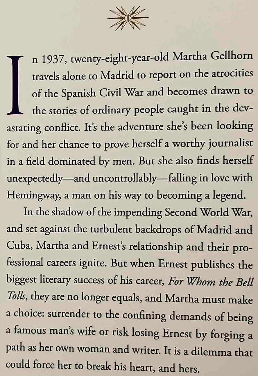 A novel of Ernest Hemingway and his passionate, stormy marriage to Martha Gellhorn, a fiercely independent, ambitious young woman who would become one of the greatest war correspondents of the twentieth-century . . .