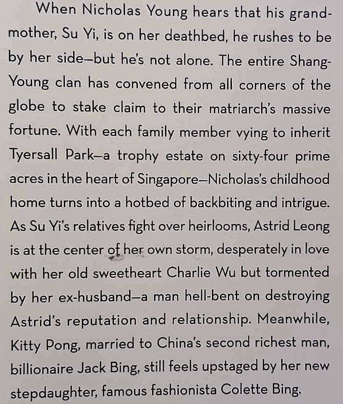 In this sweeping tale Kevin Kwan hilariously reveals the long-buried secrets of Asia's most privileged families and their rich people problems.