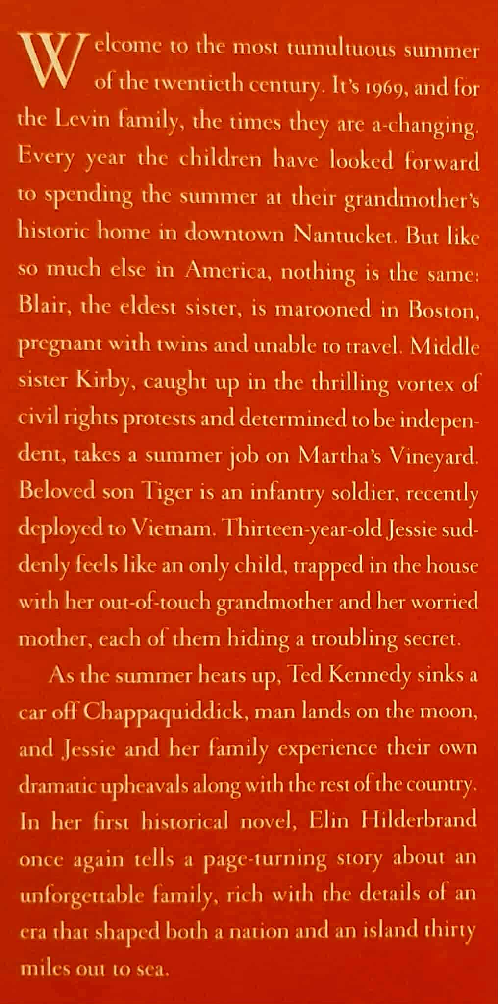 Four siblings experience the drama, intrigue, and upheaval of a summer when everything changed in Summer of '69, a historical novel rich with the details of an era that shaped both a nation and an island thirty miles out to sea, once again earning Hilderbrand her title as queen of the summer novel.