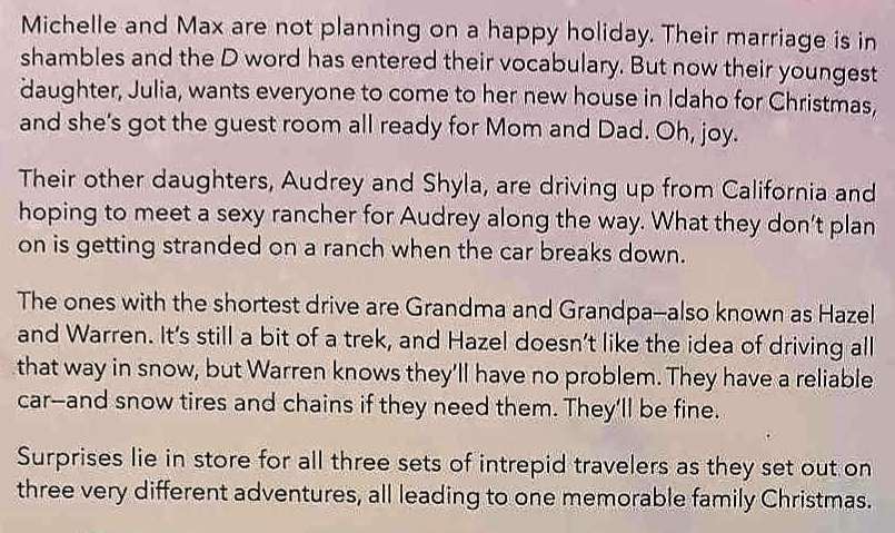 A joyous journey of unexpected surprises, family reconnections, and Christmas magic lie in store for all three sets of intrepid travelers in The Road to Christmas as they set out on three very different adventures, all of which lead to one very memorable family Christmas.
