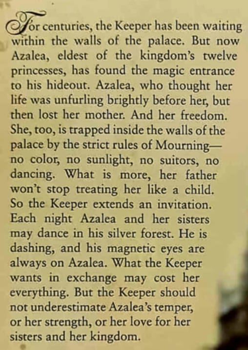 The eldest princess in a family of twelve girls, Azalea has everything before her, but it's suddenly stripped away and Azalea must fight to save her family (and her heart) from an ancient dark magic from within the palace walls . . .