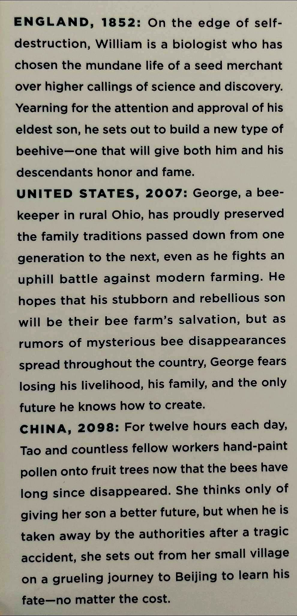 The History of Bees follows three generations of beekeepers from the past, present, and future; weaving a spellbinding story of their relationship to the bees (as well as to their children and one another) against the backdrop of an urgent, global crisis . . .