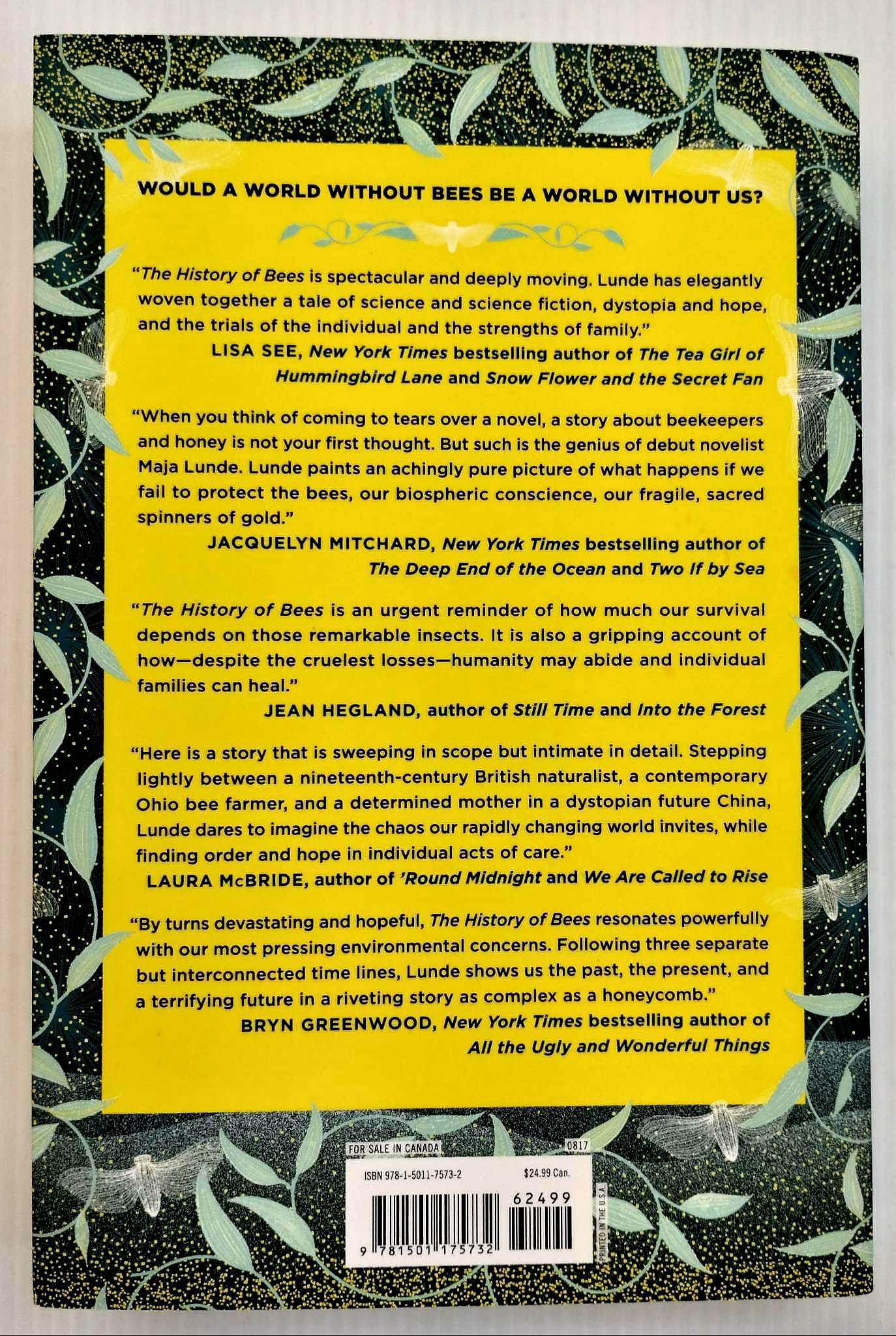 Haunting, illuminating, and deftly written, The History of Bees joins the past, the present, and a terrifying future in a riveting story as complex as a honeycomb that is just as much about the powerful bond between children and parents as it is about our very relationship to nature and humanity.