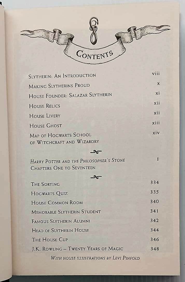 To mark the 20th anniversary of its first publication, Bloomsbury has published four House Editions of J.K. Rowling's modern classic.  These stunning versions each feature the individual house crest on the jacket, exciting new content (including fact files, house histories, character profiles, etc.) as well as line illustrations exclusive to that house, by Kate Greenaway Medal winner Levi Pinfold, and each book has sprayed edges in that house's colours.