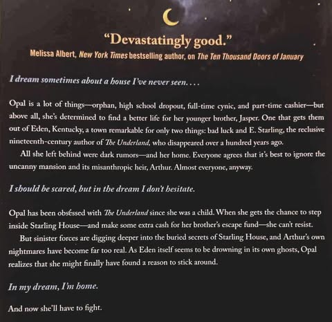 A gorgeous, modern gothic fantasy from an exceptional and undeniable talent, Starling House is as sumptuous and romantic as it is sinister with is haunting tale of longing, lies, and generational curses.
