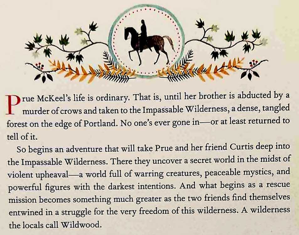 Wildwood captivates readers with the wonder and thrill of a secret world within the landscape of a modern city. It feels at once firmly steeped in the classics of children's literature and completely fresh. The story is told from multiple points of view, and the book features more than eighty illustrations, including six full-color plate