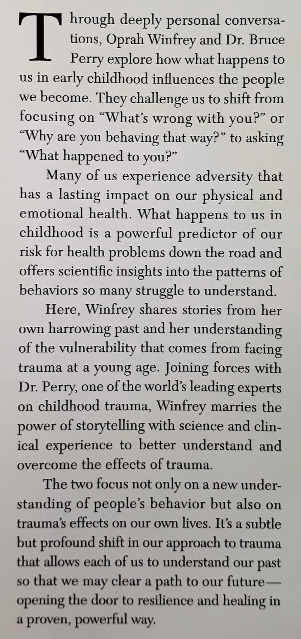 "Revealing, intimate, and educational, What Happened to You? is a testament to the authors’ wish for readers to come to grips with, and let go of, the past―and to move forward into 'post-traumatic wisdom.'" -- O Magazine