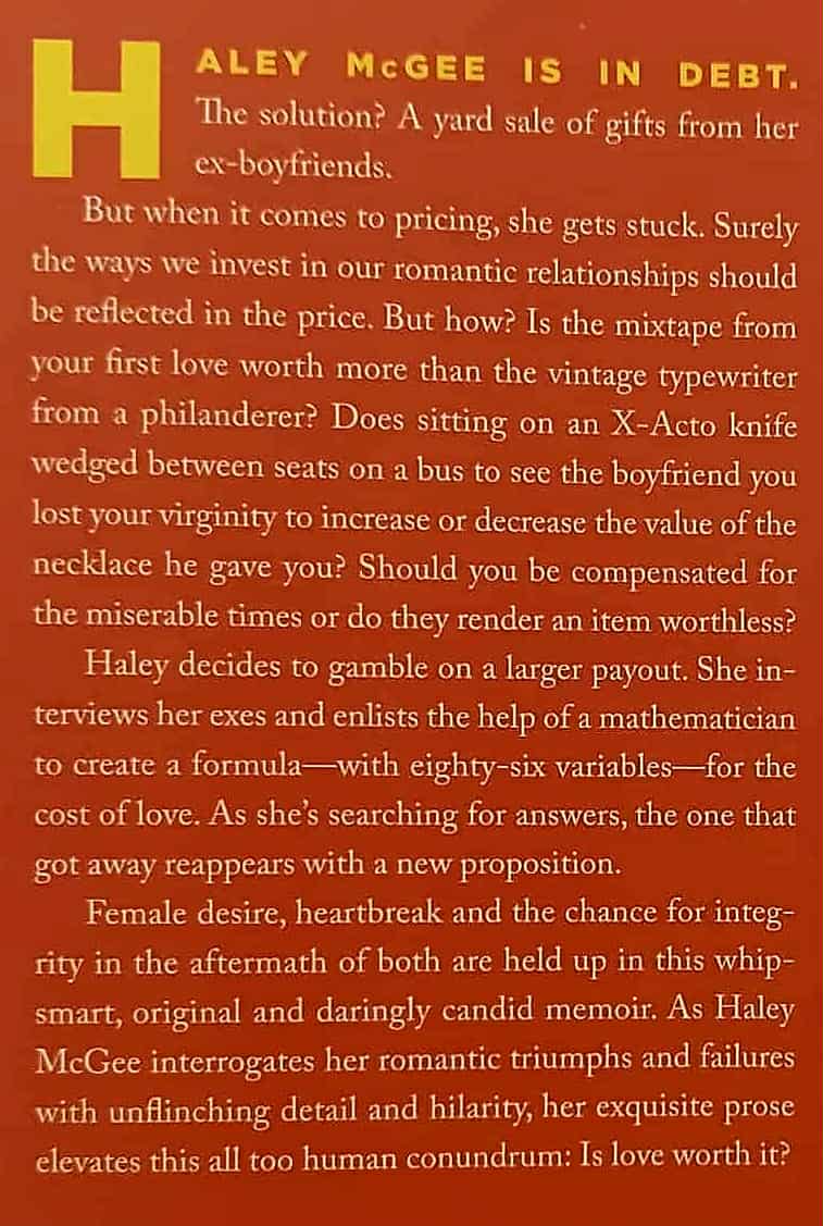 In this hilarious and heartfelt memoir, Canadian born actor and playwright Haley McGee sets out to calculate (with mathematical precision) the exact cost of love, and whether or not all of her former relationships were worth it.