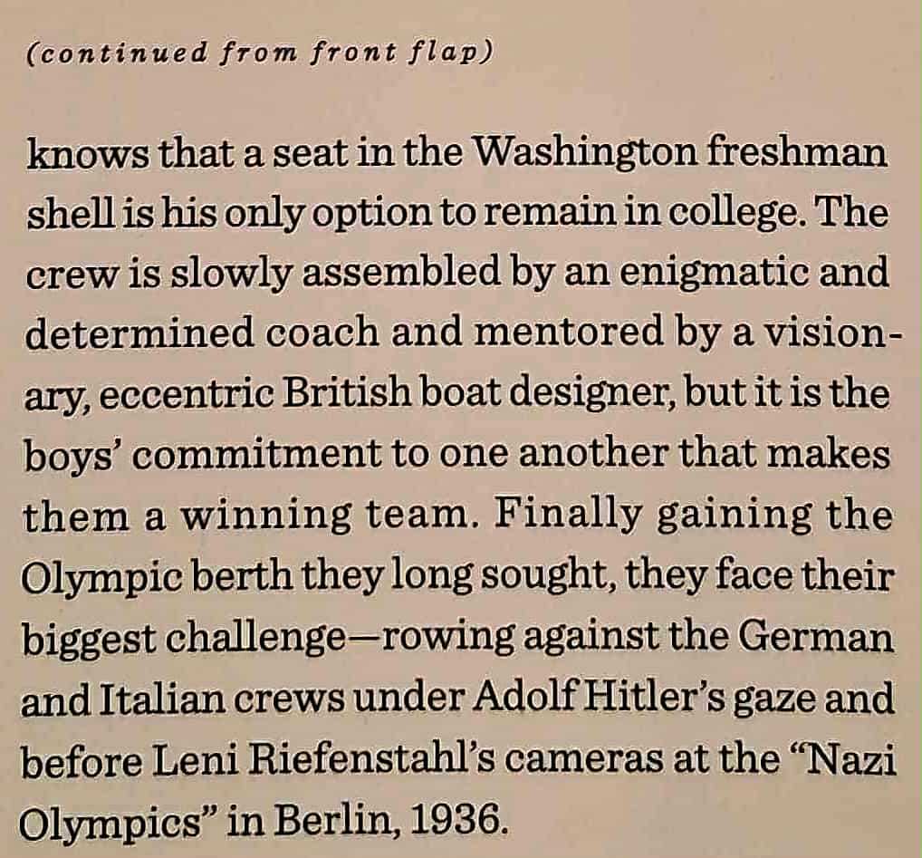 For readers of Laura Hillenbrand's Seabiscuit and Unbroken, comes The Boys In the Boat: the dramatic story of the American rowing team that stunned the world at Hitler's 1936 Berlin Olympics.