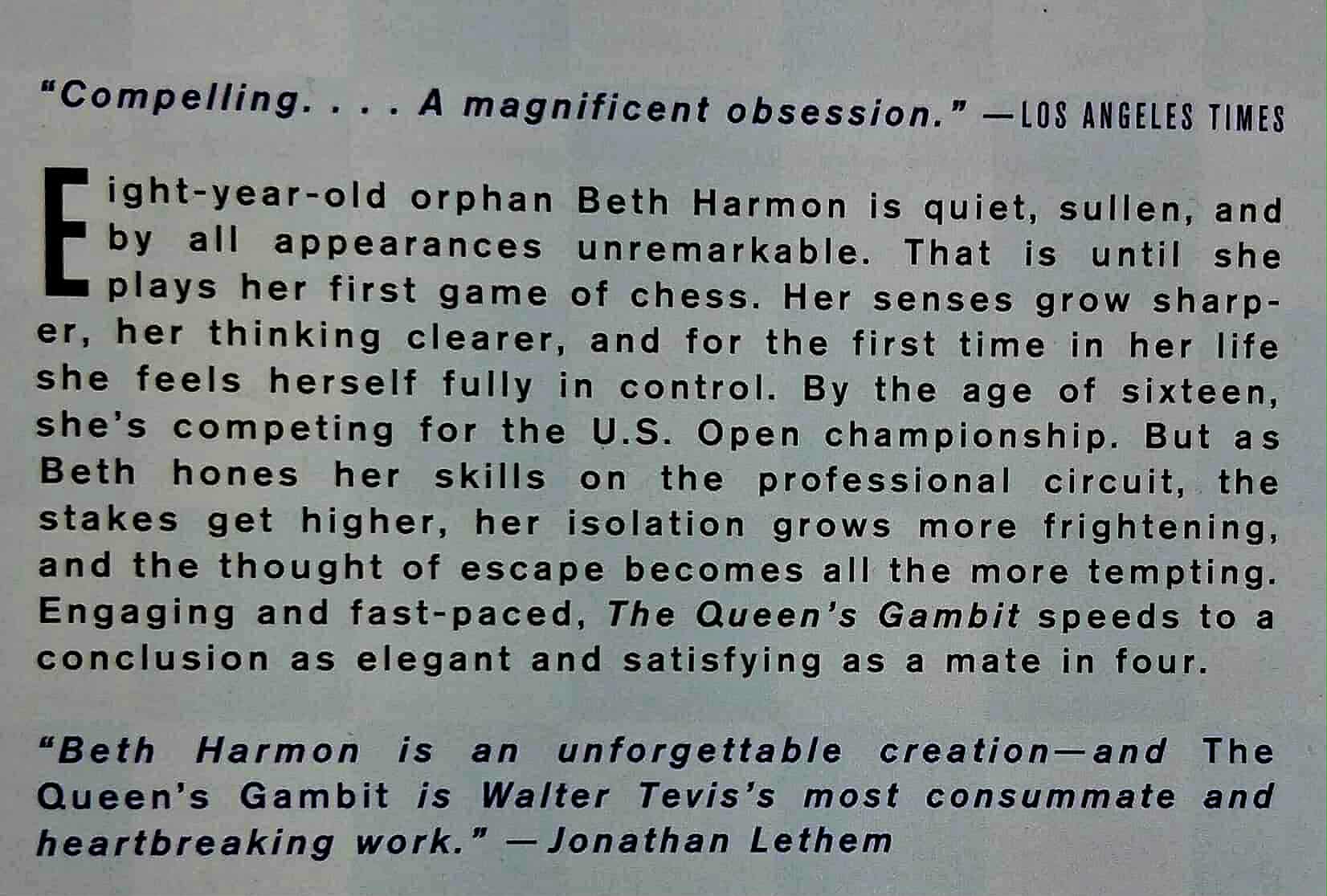 Exciting, fast-paced, and elegantly written, The Queen’s Gambit is a gripping thriller masquerading as a chess novel that is sure to keep readers on the edge of their seats.