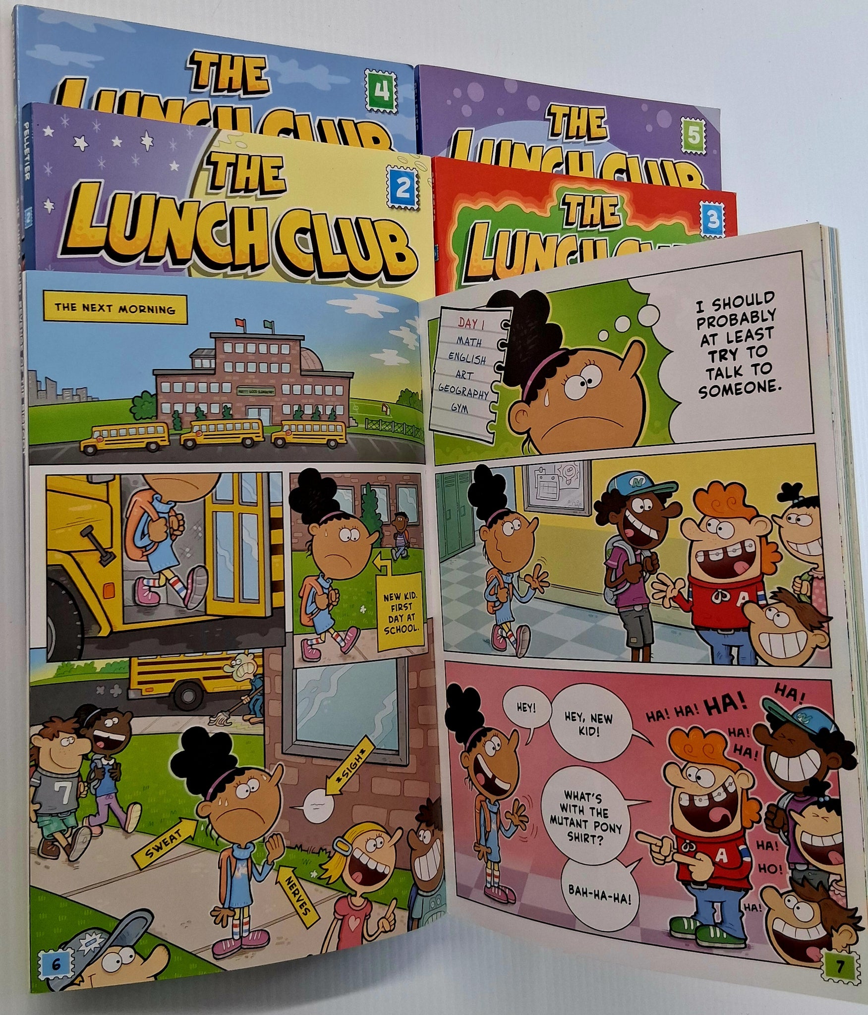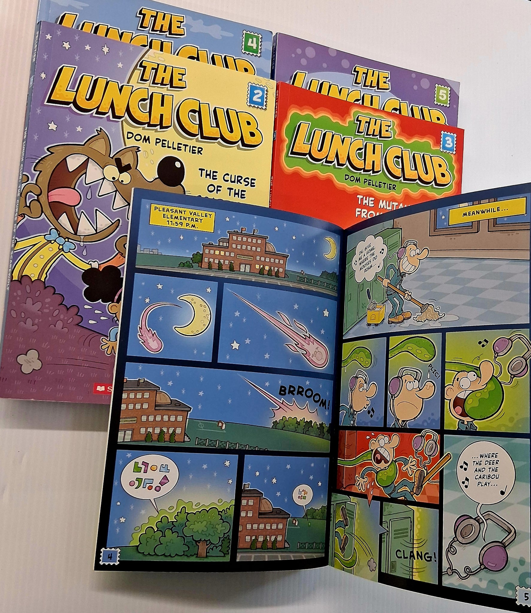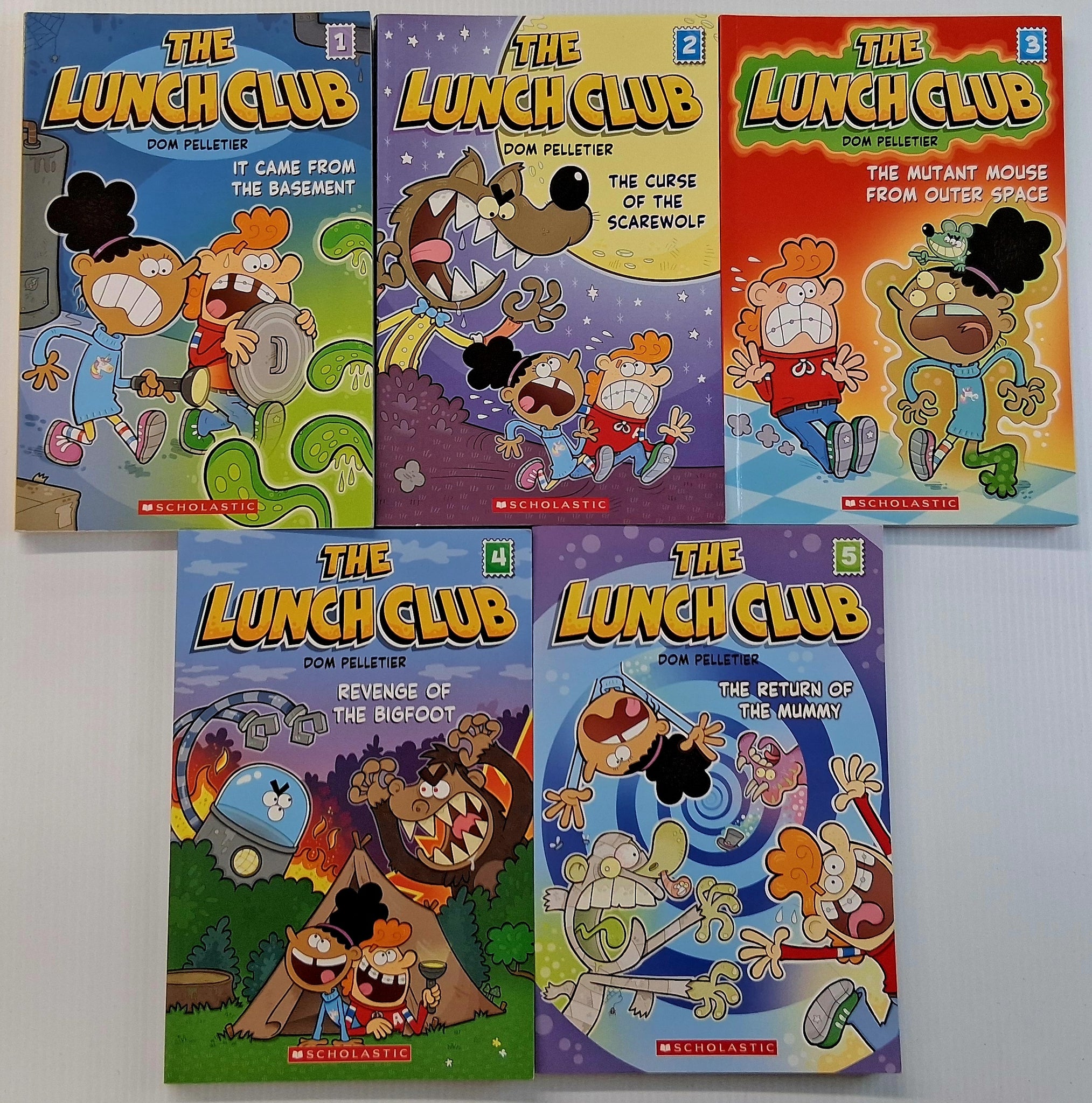 Young readers can immerse themselves in the hysterically funny middle grade comedic graphic novel series 'The Lunch Club' with this introductory set featuring the first five volumes: 1) It Came from the Basement, 2) The Curse of the Scarewolf, 3) The Mutant Mouse from Outer Space, 4) Revenge of the Bigfoot, and 5) The Return of the Mummy.