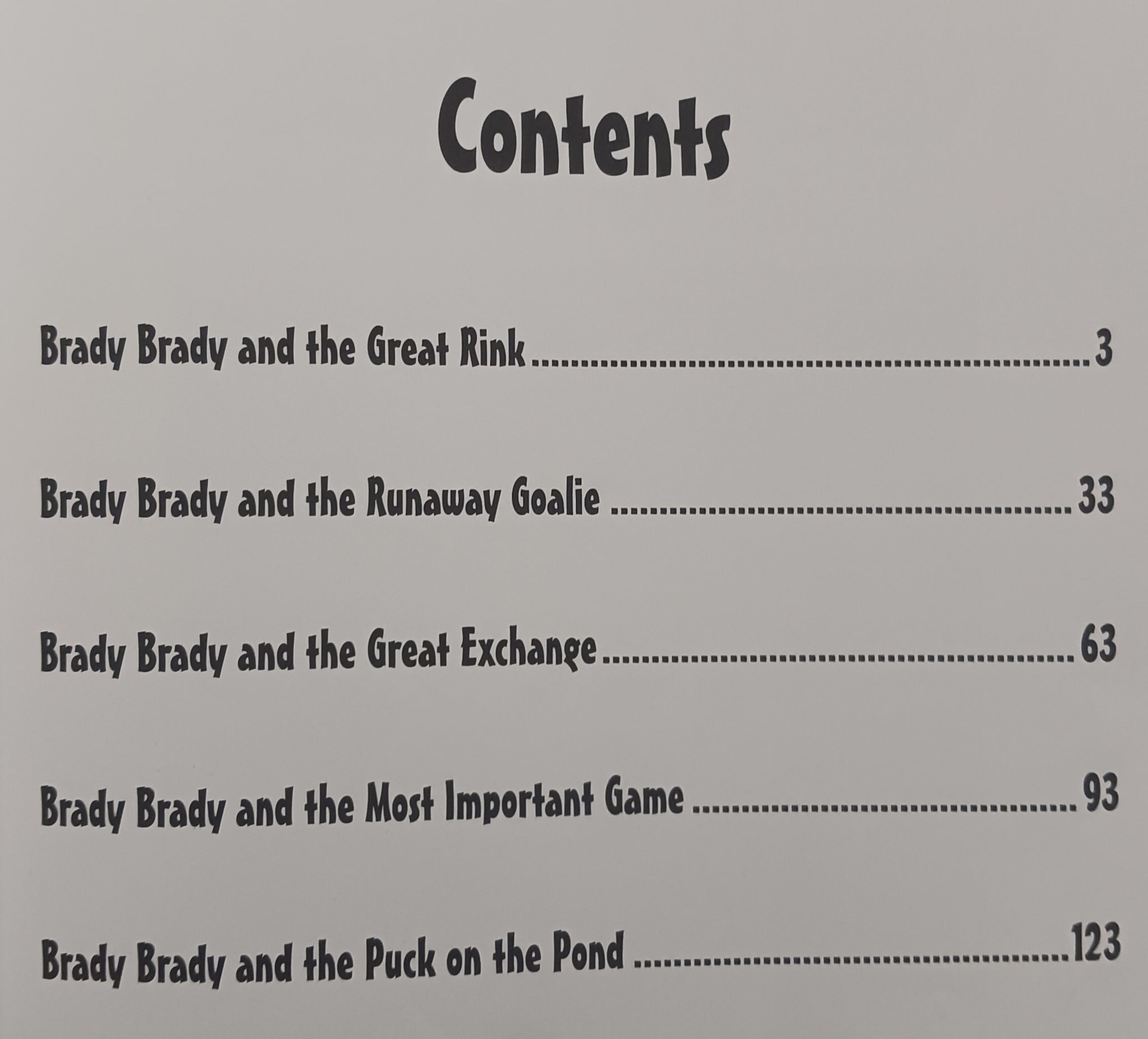 Join Brady and his friends for fun on the ice with the Brady Brady All-Star Hockey Collection, an exciting compendium of five superstar stories: 1) Brady Brady and the Great Rink, 2) Brady Brady and the Runaway Goalie, 3) Brady Brady and the Great Exchange, 4) Brady Brady and the Most Important Game, and 5) Brady Brady and the Puck on the Pond.
