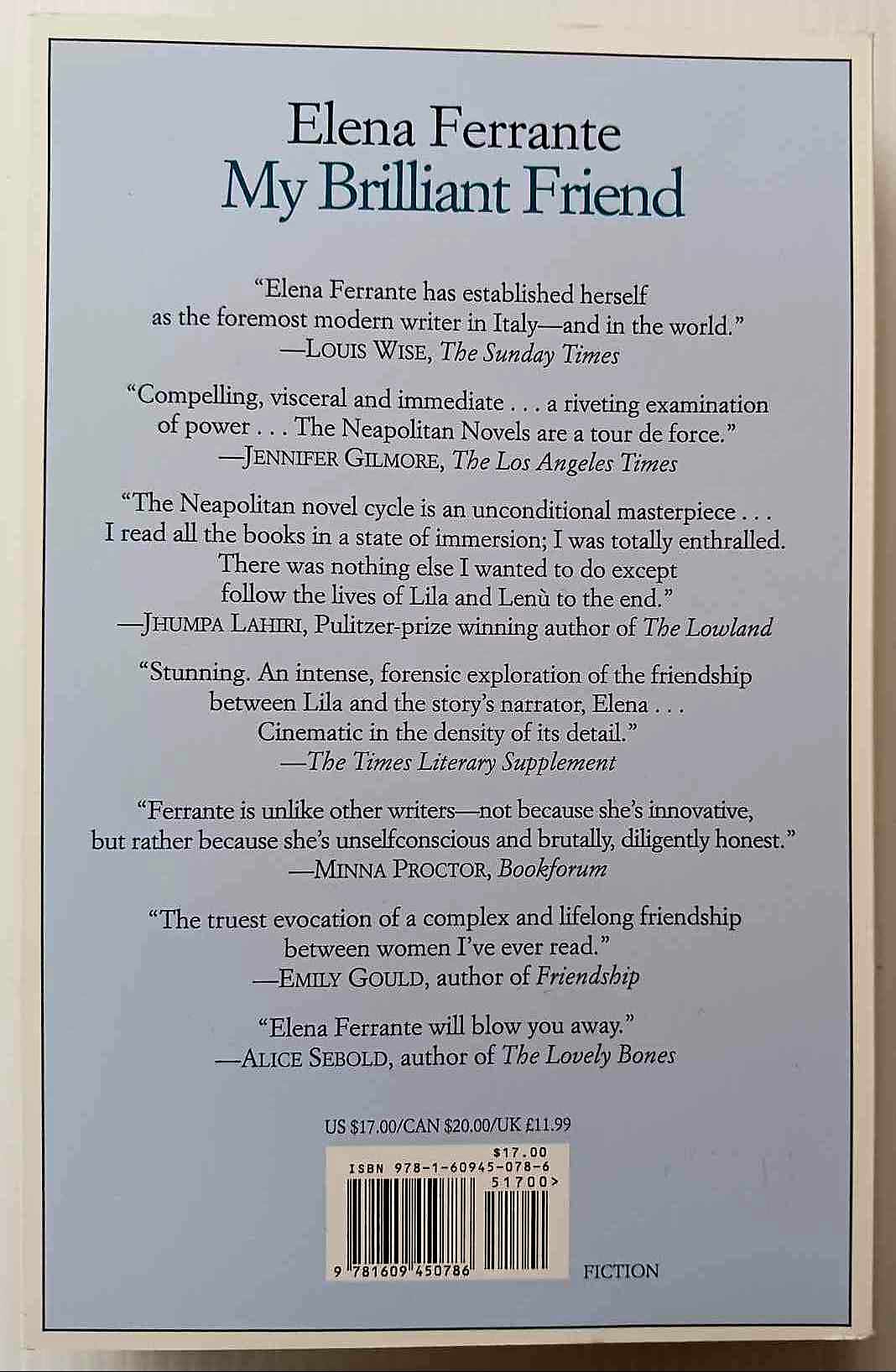 A modern masterpiece from one of Italy's most acclaimed authors, My Brilliant Friend is a rich, intense and generous hearted story about two friends, Elena and Lila. Ferrante's inimitable style lends itself perfectly to a meticulous portrait of these two women that is also the story of a nation and a touching meditation on the nature of friendship.