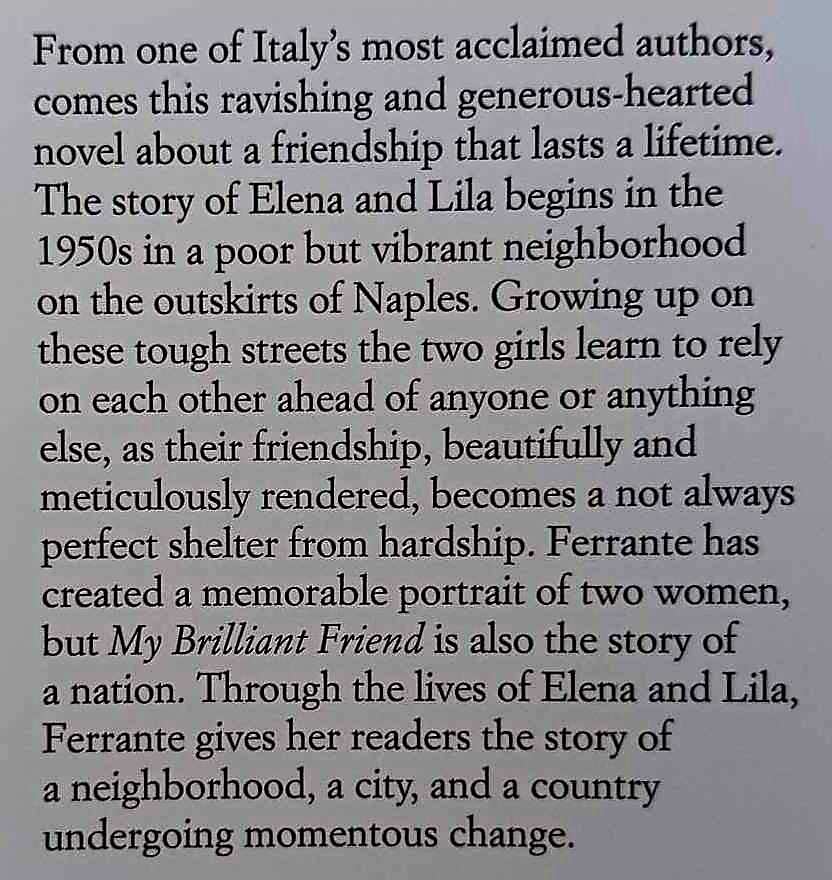 Through the lives of these two women, Elena Ferrante tells the story of a neighborhood, a city, and a country as it is transformed in ways that, in turn, also transform the relationship between her two protagonists.